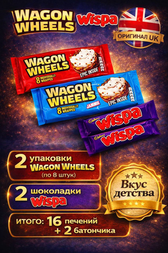 Набор печенья в шоколаде Wagon Wheels (Вагон Вилс) 2 шт и Wispa (Виспа) 2 шт