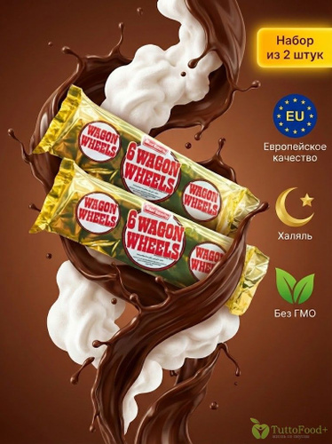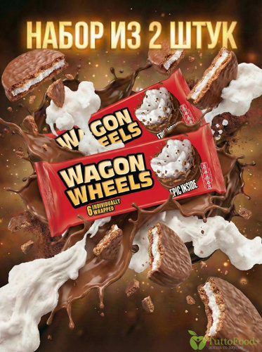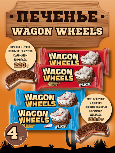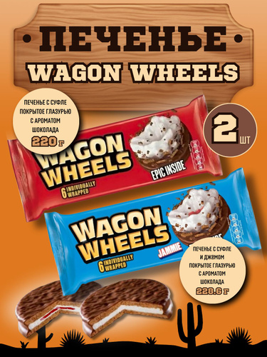 Печенье Wagon Wheels с суфле и джемом, покрытое глазурью с ароматом шоколада+Печенье Wagon Wheels с суфле, покрытое глазурью с ароматом шоколада, 2 упаковки