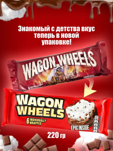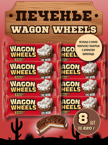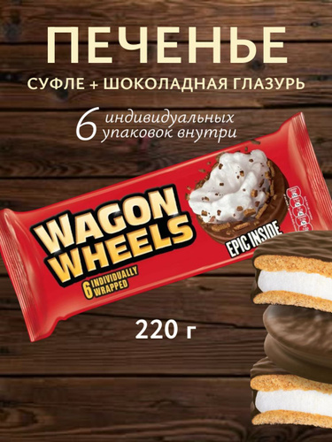 Печенье Wagon Wheels с суфле, покрытое глазурью с ароматом шоколада, 220 г