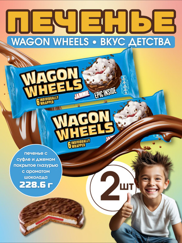 Печенье WAGON WHEELS JAMMIE с суфле и джемом покрытое гразурью 228г*2штуки