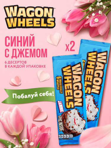 Печенье в шоколаде Wagon Wheels Jammie слоеное изделие с суфле, джемом и бисквитом, покрытое глазурью, синее, 2 упаковки