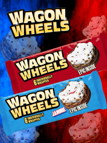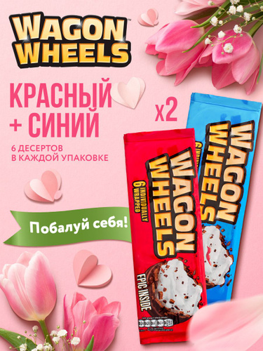 Печенье в шоколаде Wagon Wheels Classic + Jammie слоеное изделие с суфле, джемом и бисквитом, покрытое глазурью, красное и синее, 2 упаковки