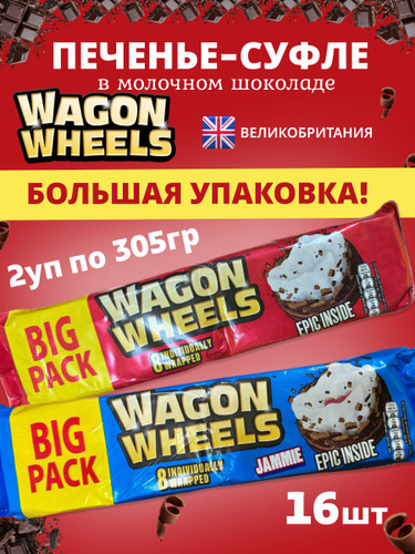Печенье Wagon Wheels Jammie и Original в шоколаде с прослойкой из суфле + джема и суфле,2 уп