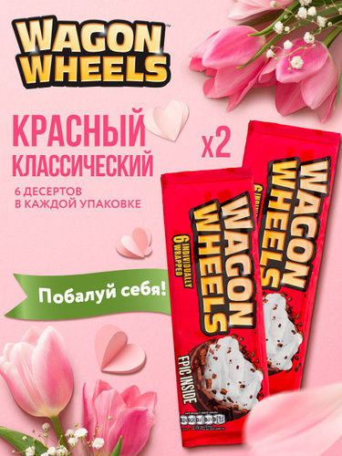 Печенье в шоколаде Wagon Wheels Classic слоеное изделие с суфле и бисквитом, покрытое глазурью, красное, 2 упаковки