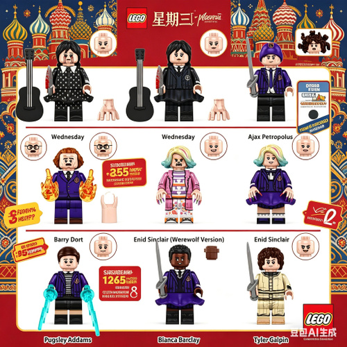 Набор минифигурки /Wednesday.Barry Dort.Pugsley Addams. 9 шт. (4.5см, пакет)