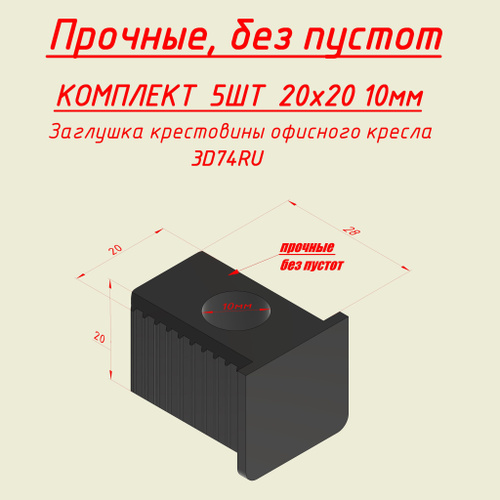 УСИЛЕННАЯ Заглушка втулка фиксатор крестовины офисного кресла Диам.10мм. 5шт. Размер 20х20мм