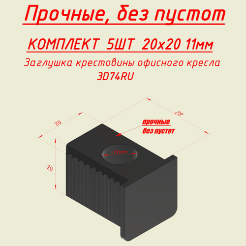 УСИЛЕННАЯ Заглушка втулка фиксатор крестовины офисного кресла Диам.11мм. 5шт. Размер 20х20мм