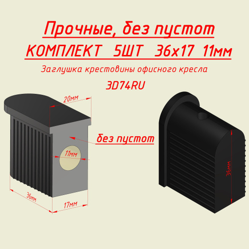 УСИЛЕННАЯ Заглушка втулка фиксатор крестовины офисного кресла Диам.11мм. 5шт. Размер 36х17мм