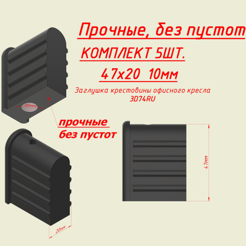 УСИЛЕННАЯ Заглушка втулка фиксатор крестовины офисного кресла Диам.10мм. 5шт. Размер 47х20мм