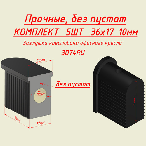УСИЛЕННАЯ Заглушка втулка фиксатор крестовины офисного кресла Диам.10мм. 5шт. Размер 36х17мм