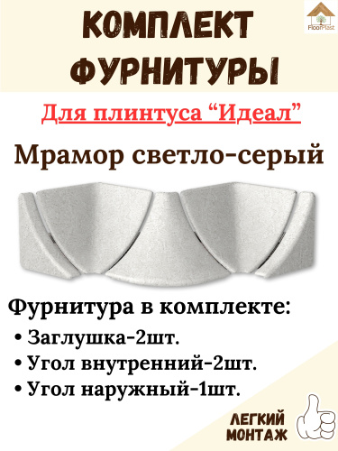 Комплект фурнитуры к плинтусу для столешницы IDEAL(Идеал) 111 Мрамор светло-серый - 1шт.