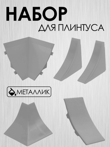 Комплект углы и заглушки для ВОГНУТОГО кухонного плинтуса 28х28 пластик металлик