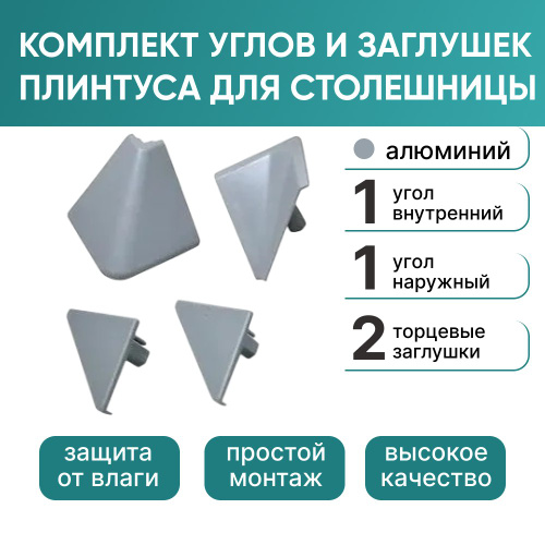 Комплект углов и заглушек плинтуса для столешницы, алюминий