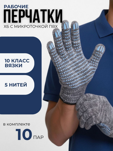 Перчатки рабочие, строительные ХБ с ПВХ, 5 нитей,10 пар