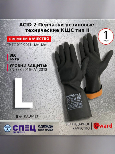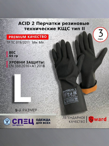 ACID 2 Перчатки резиновые технические КЩС тип II 3 пары 9/L