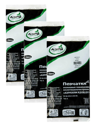 Перчатки технические кислотощелочестойкие К20Щ20 АЗРИХИМ, тип 1, размер 3