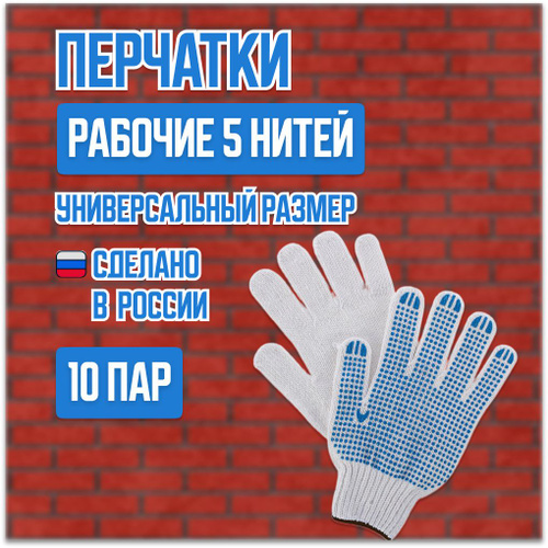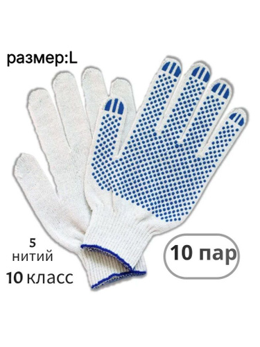 Перчатки рабочие ХБ 5 нитей 10 класс с ПВХ ТОЧКА белые (10 пар)