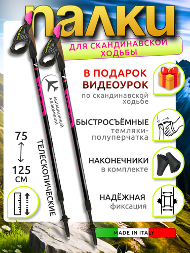 Телескопические палки для скандинавской ходьбы Fizan NW Speed pink 75-125 см