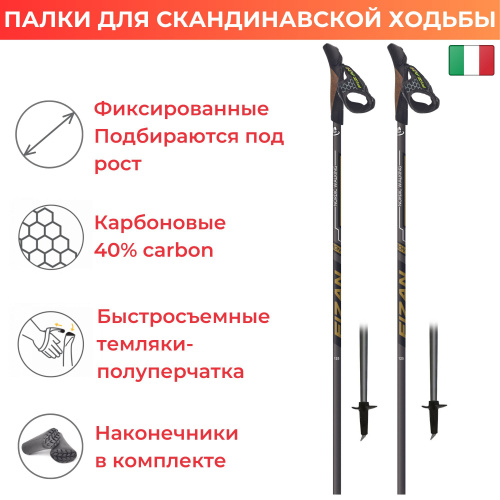 Палки для скандинавской ходьбы фиксированные FIZAN NW RUNNER GOLD C40 130 CM