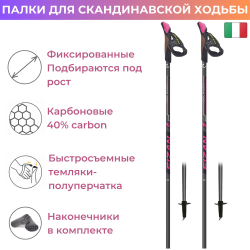 Палки для скандинавской ходьбы фиксированные FIZAN NW RUNNER PINK C40 120 СМ
