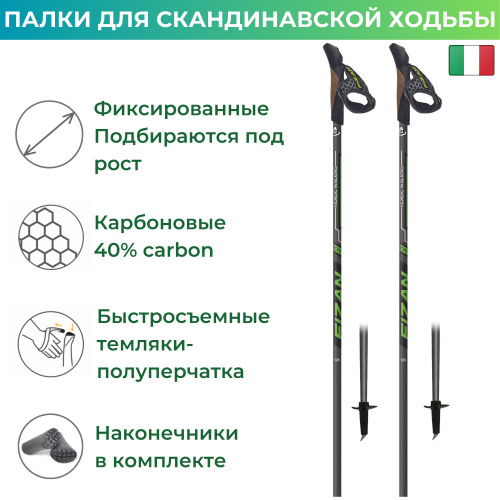 Палки для скандинавской ходьбы фиксированные FIZAN NW RUNNER GREEN C40 125 CM
