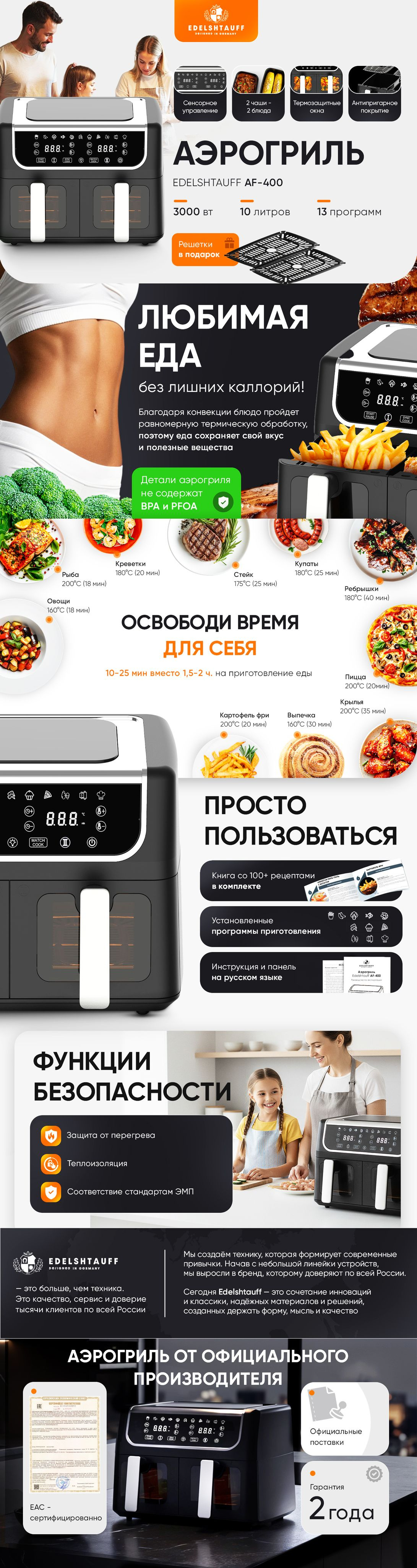 Здравствуйте! Спасибо за Ваш вопрос - с радостью расскажем, почему нашу продукцию выбирают среди других продавцов чаще всего. Наш аэрогриль - это 100% оригинальный и сертифицированный товар от проверенного производителя, а значит, Вы получаете гарантированное качество, надежность, долгий срок службы, а также пожизненную клиентскую поддержку, где мы помогаем с любыми вопросами и проблемами. Другие продавцы могут экономить на качестве сборки и материалах, комплектующих или сервисе, а мы даем то, что обещаем - без скрытых недостатков. Мы предлагаем: - Официальную гарантию — ваша покупка под защитой. - Качественные товары — надежные решения для ваших задач. - Поддержку в будни с 7:00 до 16:00 (МСК) — помогаем на всех этапах. Если не ответили сразу, не волнуйтесь — обязательно свяжемся в рабочее время и решим ваш вопрос. Выбирая Edelshtauff, вы получаете не просто технику — а надежного помощника на кухне! 😊 С Уважением, Edelshtauff!