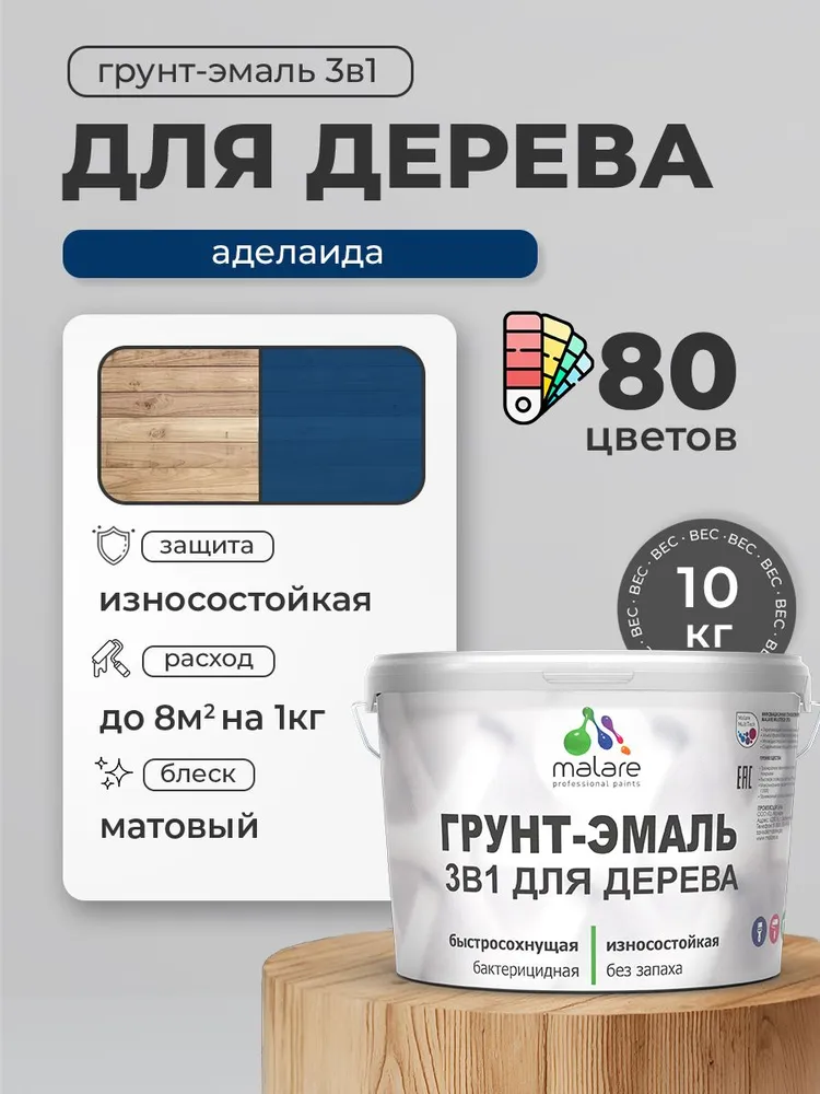 Грунт-Эмаль 3 в 1 Malare это cпециализированная краска-антисептик с добавлением воска для защитно-декоративного окрашивания любых деревянных поверхностей, как фасадных, так и интерьерных.