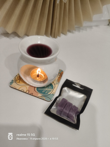 Очень важно правильно подобрать свечу к аромалампе! Пламя свечи не должно касаться чаши. Если жидкость нагреется до кипения - это исказит аромат до неузнаваемости. Если пламя будет очень низко - аромат не прогреется и вы его не услышите (при этом воск может топиться). Воск должен прогреваться при постоянной температуре. Это очень частая ошибка, к сожалению!