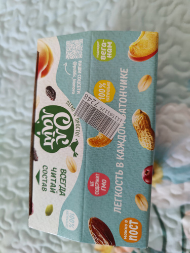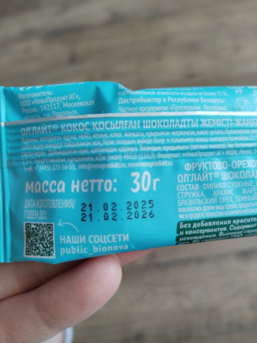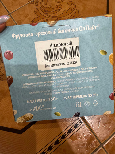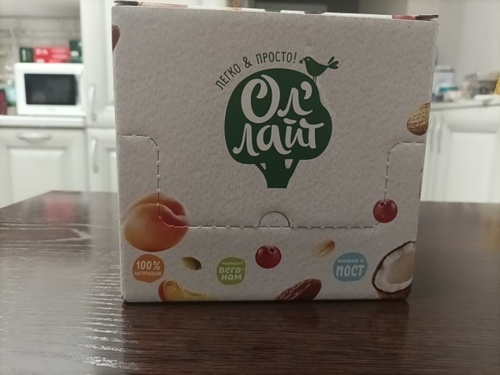 Финики сушеные, изюм, семена тыквы, цедра лимона сушеная, бразильский орех, кешью. Может содержать незначительное количество арахиса, фрагменты косточек.
