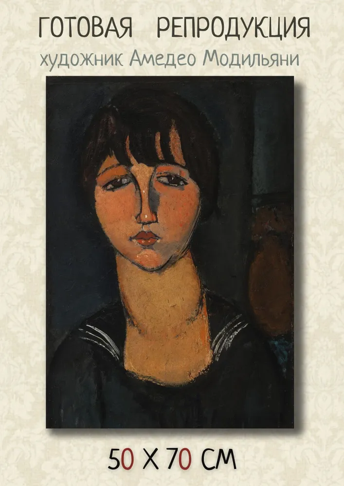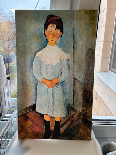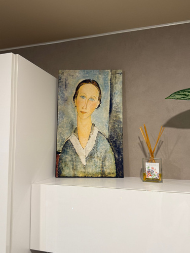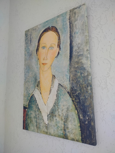 Размер слегка смутил: она выглядит тонкой и длинной. Возможно это подходит картине и вообще портретам Модельяни с тонкими шеями и вытянутыми лицами.