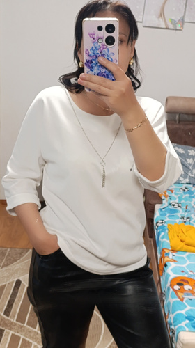 Ношу 44 размер, но блузка оказалась чуть большеватой, может потому, что горловина большая. Но не критично, носить можно.