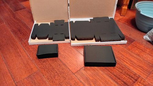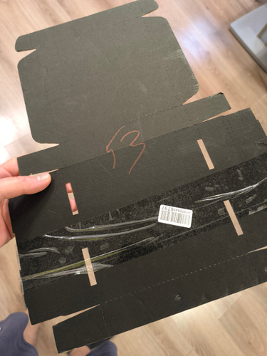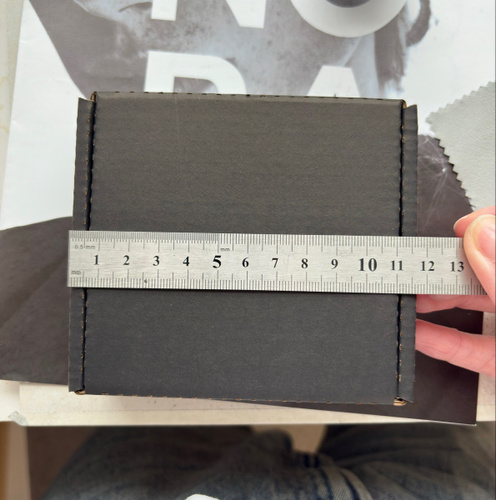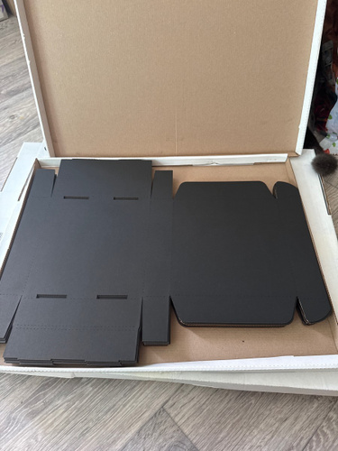 Комплект: 10 коробок Форма: 0427 (FEFCO) Цвет: чёрный / бурый Размеры коробки: — Внутренние: 180х180х30 мм — Внешние: 196х183х32 мм Объём: — Внутренний: 0.97 л — Внешний: 1.15 л Размер развёртки: 334.1х457.5 мм Картон: — Марка: T23E по ГОСТ — Плотность: 375 г/м² — Профиль: E (1.5 мм) Вес: 38.0 г Производство: Россия