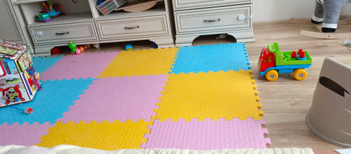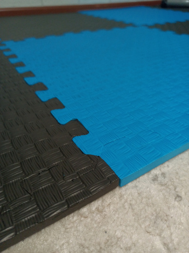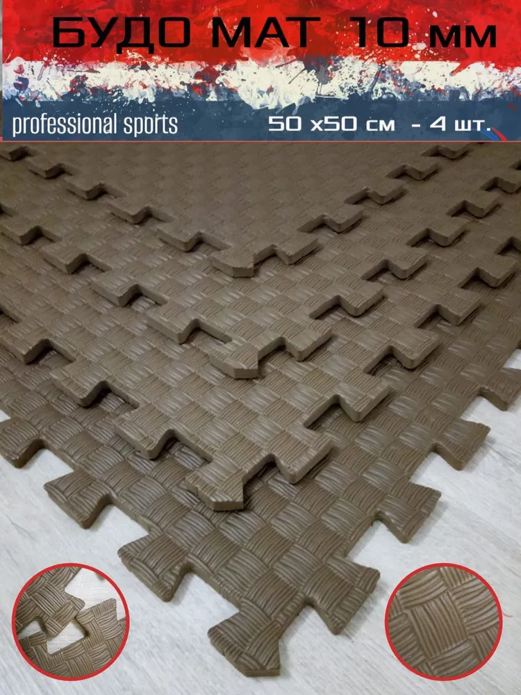 Будо мат - напольное покрытие для домашнего спортивного зала или детского спортивного уголка. Травмобезопасный коврик пазл толщиной 10 мм смягчает падения, а фактурное тиснение предотвращает скольжение. Производится в России из долговечного ЭВА материала, который не впитывает влагу и запахи. Будо мат прост в обращении и уходе: элементарно монтируется и разбирается, занимает мало места при хранении, легко моется и быстро сохнет. Мягкий пол защищает половое покрытие от повреждений тренажерами. Вспененный EVA благодаря микропорам обладает хорошим шумопоглощающим эффектом. Крепление "ласточкин хвост" надежно соединяет элементы, позволяя собрать покрытие необходимого размера и конфигурации. Будо-маты - необходимый атрибут для домашних занятий, фитнесом, йогой, аэробикой, гимнастикой. Не обойдись без будо матов при организации детского спортивного уголка в квартире или доме. Размеры одного элемента: 500х500, толщина 10 мм. В комплекте 4 детали с 2 мя заглушками на каждой.Будо маты изготовлены из безопасного, мягкого и лёгкого материала - этиленвинилацетата (100% ЭВА). После вскрытия упаковки рекомендуется промыть элементы коврика-пазла теплой водой с мылом и просушить.
