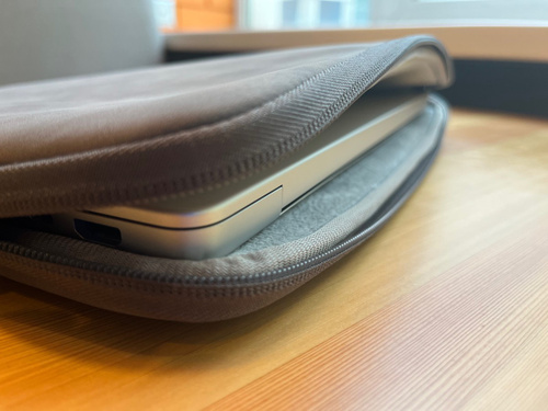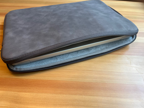 Хорошый чехол. Точнее сумка-чехол. Внутри приятная мягкая ткань. Снаружи на ощупь похоже на «нубук», прочный материал и похоже что влагостойкий. Макбук 14 pro 2024 года влезает идеально.