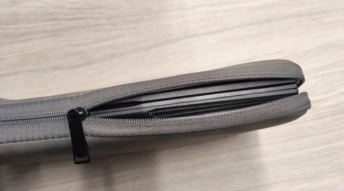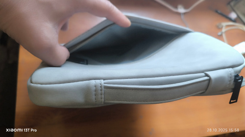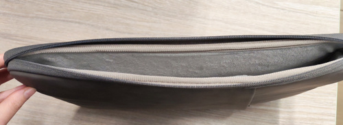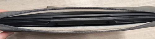 Сама молния пластиковая, это плюс, НЕ поцарапаете ноут, когда будете засовывать. Но есть нюанс, собачки на молнии железные, поэтому открывайте замки пошыре, прежде чем запихивать технику, что бы не задеть и не царапнуть.