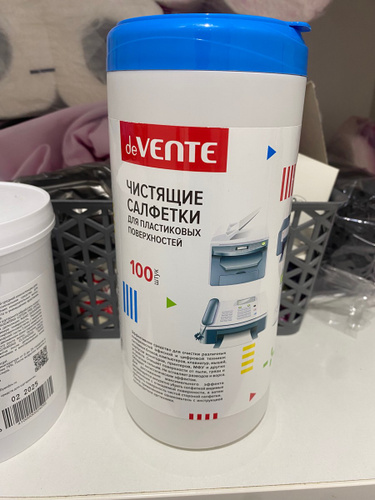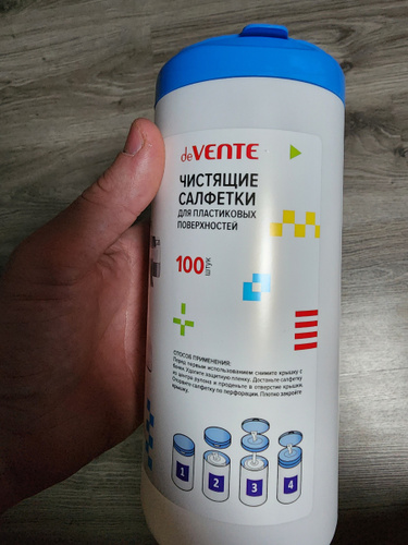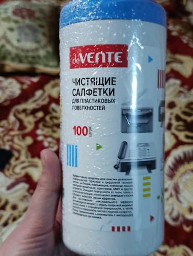 Чистящие влажные плотные салфетки deVENTE поставляются в тубе 100 штук, предназначены для чистки пластика. Эффективное средство для очистки различных поверхностей офисной и цифровой техники: системных блоков компьютеров, клавиатур, мышей, корпусов мониторов, принтеров, МФУ, ПК и других устройств. Очищает поверхности от пыли, грязи и отпечатков пальцев. Не оставляет разводов и ворса. Обладает антистатическим эффектом, безопасны для кожи, имеют приятный запах. Для достижения максимального эффекта рекомендуется аккуратно убрать салфеткой видимые загрязнения с очищаемой поверхности, а затем протереть поверхность чистой стороной салфетки. Перед применением ознакомьтесь с инструкцией производителя оргтехники.