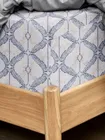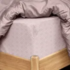 красиво натянулась на кровать, резинки по углам, выглядит красиво, рисунок милый, не броский, это перкаль, упаковка красивая, внутри картон и закрыто полителеновой толстой ,прозрачной упаковкой.