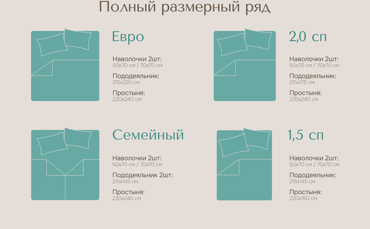 Сейчас в наличии есть комплект Евро арт.1409926495. Если вам нужны будут другие размеры,то до конца месяца они появятся в наличии, как раз они в пути на склад Озон.