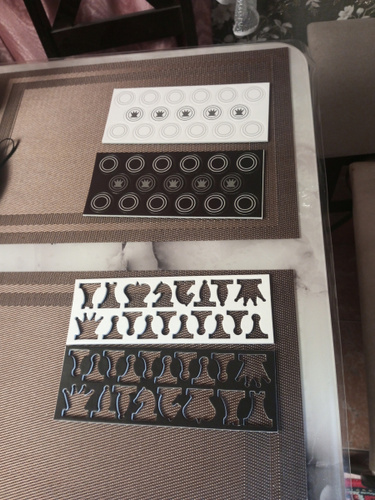 • набор шахмат (высота до 3 см, ширина до 3 см, толщина – 4 мм.) – 36 шт.