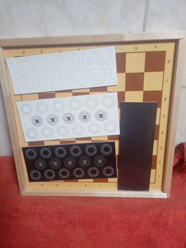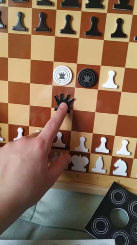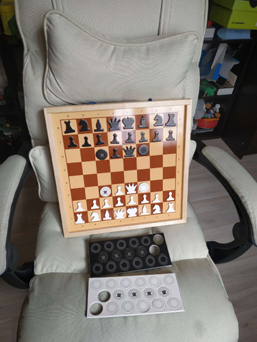 Фигуры красивые, мягкие, удобные, доска из хорошего материала, в комплекте помимо основных фигур есть второй ферзь и запасная, девятая пешка для каждого цвета. Шашки хорошие, только почему-то белые чуть ниже чёрных (когда сложил в стопку, чёрные были выше, подумал, что одну белую потерял, а когда пересчитал, понял, что всё на месте, просто белые ни...  Читать полностью