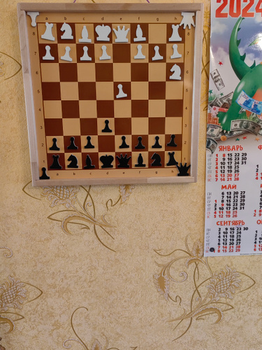 Замечательная демонстрационная доска, правда не очень большая 37+37, но все равно хорошо видно позицию. Фигуры хорошо примагничиваются. Доска крепкая, хорошо сделана.