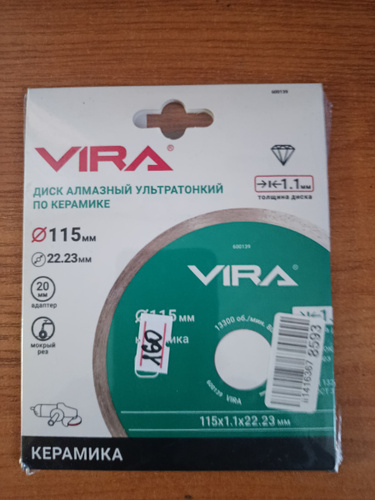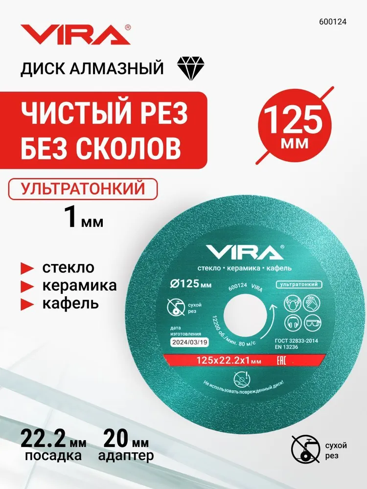 Диск алмазный по стеклу и керамике 125 мм VIRA