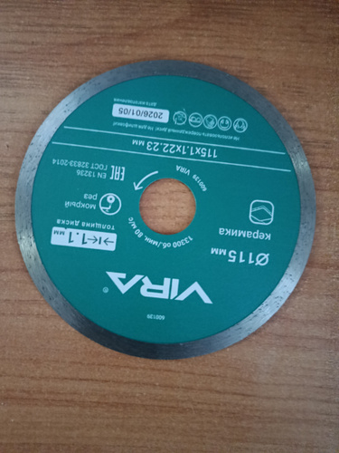 Диск предназначен для точной и аккуратной резки стекла, керамической плитки, кафеля и других хрупких материалов. Он изготовлен по технологии вакуумной пайки, которая обеспечивает прочность сцепления алмазного зерна с основой. Сплошная режущая кромка и минимальная толщина диска (всего 1 мм) гарантируют идеально ровный рез без сколов, а высокая концентрация алмазов увеличивает скорость. При сухом резе для предотвращения перегрева необходимо делать перерывы: после каждой минуты работы давать диску вращаться на холостом ходу 15–20 секунд. Использование воды в качестве охлаждения не только увеличивает ресурс диска, но и существенно уменьшает количество пыли.