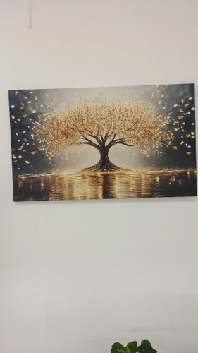 Длина меньшей стороны, см: 30, Длина большей стороны, см: 40, Цвет товара: желтый-золотой, Название цвета: Дерево удачи в золоте - Абстракция