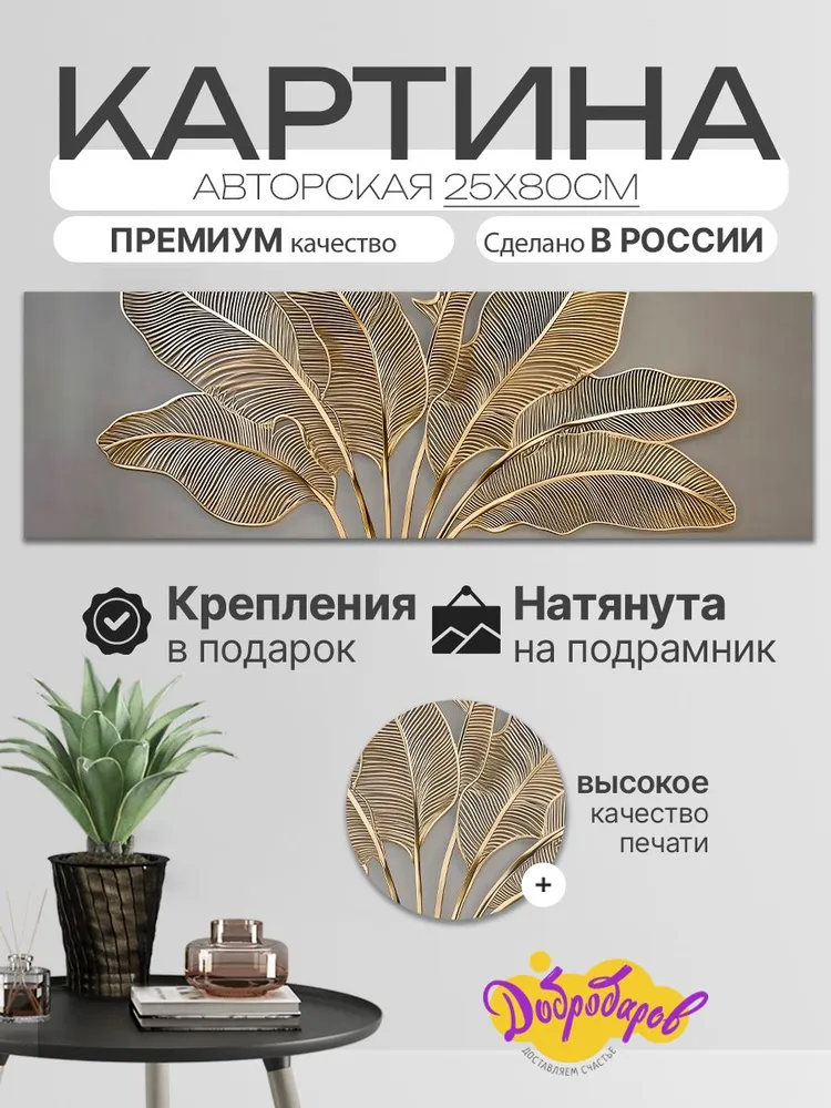 ДоброДаров Картина ""Золотые листья - абстракция"", 80 х 25 см  #1