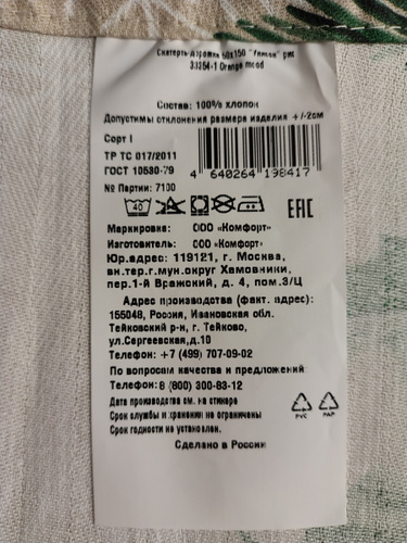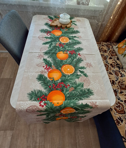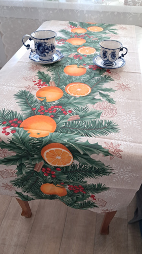 Отличная скатерть!Очень порадовала. Плотная, качественная, приятная на ощупь. Новогодний рисунок яркий и четкий, полностью соответствует фото. Размер подошел идеально на стандартный стол. Смотрится очень нарядно! Доставка быстрая, упаковано хорошо. Рекомендую!