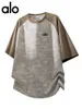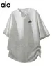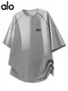 Большая однотонная футболка в стиле Alo, свободный крой, дышащая спортивная одежда для полных фигур