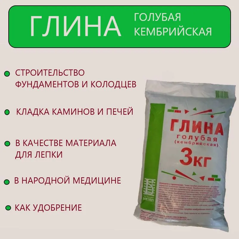 Глина голубая кембрийская используется для скульптурных работ, строительства фундаментов, кладочных растворов, пластификатор, удобрение.