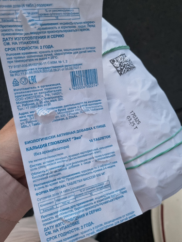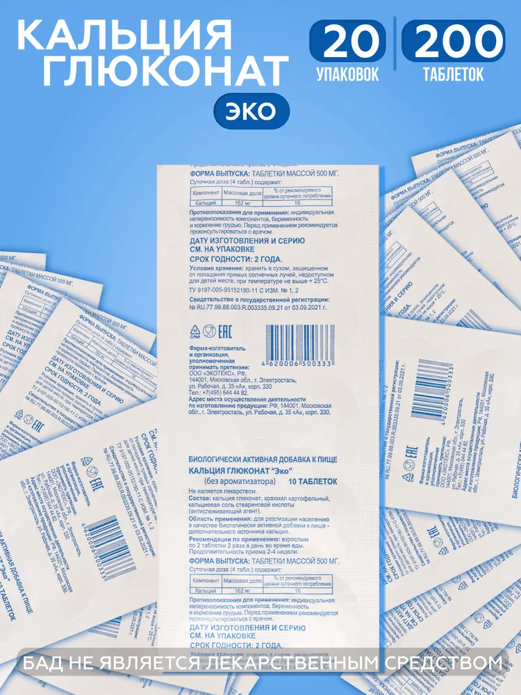 Кальция глюконат, крахмал картофельный, кальциевая соль стеариновой кислоты (антислёживающий агент)