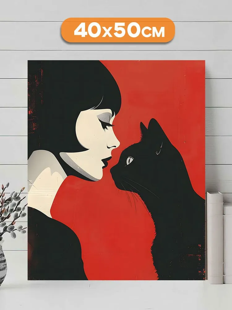 Картина на стену на холсте с изображением Брюнетка с котом размером 40*50 см, интерьерный, универсальный подарок для дома, на праздник. Цифровая фото печать обеспечивает точность и качество изображения с тематикой Красивых девушек Поп Арт и Клип Арт, а эко чернила безопасны, не выцветают и не выгорает при попадании солнечных лучей. Декоративное полотно натягивается на деревянный подрамник из клееного бруса, что предотвращает его перекос. В комплекте имеется зубчатое крепление, для легкой фиксации рисунка. Синтетический холст высокой прочности, устойчив к загрязнениям, не рассыхается и не растягивается. Этот оригинальный элемент, украсит любую комнату, будь то гостиная, спальня или офис. Пригодится для мужчины, женщины, мамы, папы, брата, сестры, мужа, жены, дочки, сына или коллеги. Можно повесить в прихожей на кухне или детской. Идеально подходит для дня рождения, нового года, новоселья, юбилея или просто без повода, чтобы порадовать близких. Доставьте радость родителям, бабушке, дедушке, лучшему другу, подруге, любимому парню или девушке. Украшение оценят даже дети и подростки, ведь в коллекции настенных декораций есть прикольные и милые персонажи для всех возрастов. Большой выбор постеров и панно позволяет найти что-то подходящее именно для вас. Порадуйте себя и своих друзей этим необычным и запоминающимся сувениром!